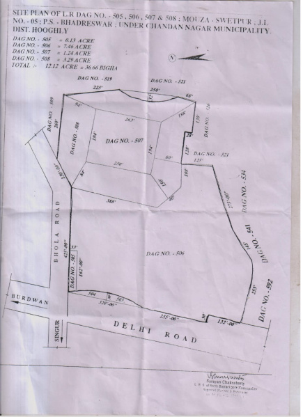 Rare opportunity to own a premium 12.12-acre (approx. 36.66 bigha) freehold property located at Mouza Swetpur, J.L. No. 05, P.S. Bhadreswar under Chandannagar Municipality, District Hooghly, West Bengal.